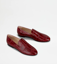 Slipper-version loafers crafted in elegant shiny leather with crocodile print and rubber outsole with embossed rubber pebbles. - Made in Italy - Women's Tod's Loafers - Leather upper - Crocodile print - Rubber outsole with embossed rubber pebbles - Maintenance and care cards included - Branded dustbag