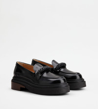 Original mix of classic and contemporary elements, these loafers combine an elegant upper with a lightweight rubber chunky outsole and a leather heel. Crafted in brushed leather, they come with a refined front weaving and a stamped Tod's monogram. The new urban must-have under the sign of cult of detailing. - Made in Italy - Loafers with clamp - Leather upper - Brushed finishing - Front weaving - Stamped Tod's monogram - Leather insole - Leather heel - EVA outsole - Maintenance and care cards included - Branded dustbag