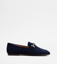 Loafers in suede with leather piping and outsole. A timeless elegance style, combined with the metal T Ring accessory. - Made in Italy - Women's loafers with clip - Ovine leather upper - Metal T Ring accessory - Leather insole - Leather outsole - Leather heel with rubber insert - Maintenance and care cards included - Branded dustbag