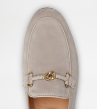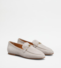 Loafers in ovine leather suede with leather outsole. A timeless elegance style, combined with the coated metal T Ring accessory. - Made in Italy - Women's loafers with clip - Ovine leather suede upper - Coated metal T Ring accessory - Leather insole - Leather outsole - Maintenance and care cards included - Branded dustbag