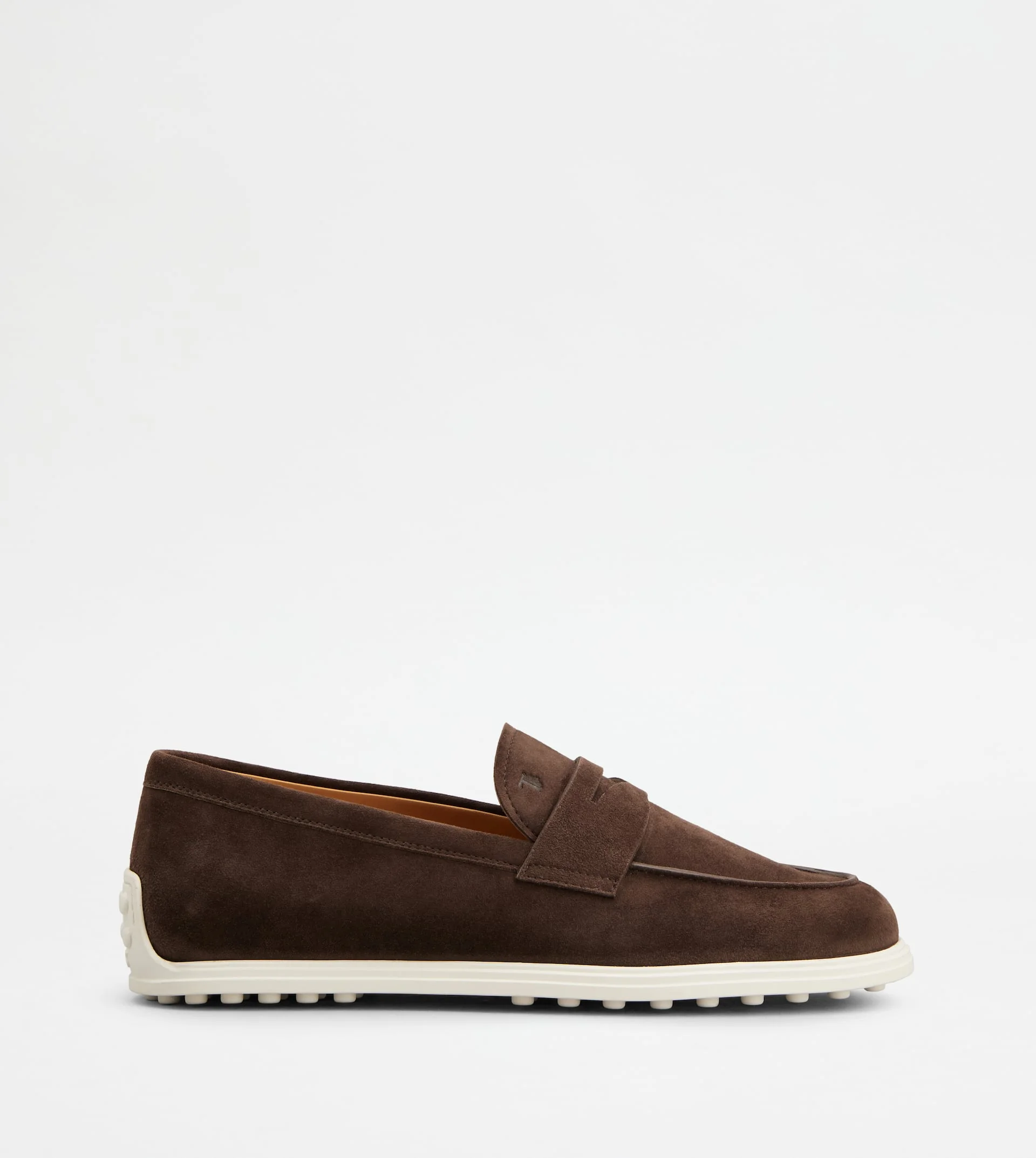 Loafers with penny bar and stamped Tod's monogram. Characterized by a rubber outsole with iconic embossed detailing, they are crafted in soft suede. - Made in Italy - Rubber outsole loafers - Goatskin suede upper - Penny bar - Calfskin leather lining and insole - Rubber outsole with embossed detailing - Maintenance and care cards included - Branded dustbag
