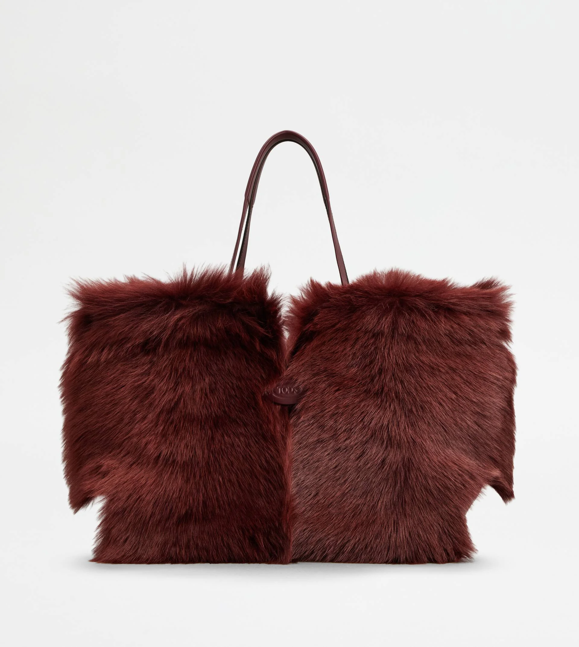 Tod's Di Bag Folio shopping draws inspiration from the most sought-after items in the brand's clothing collection. The iconic central stitching with the oval logo opens into an elegant slit. The flat handles are pulled into the top edge like a belt. Crafted in soft fur, this deconstructed model is complemented by an internal pouch in leather. - Dimensions: L 16.1 ins x H 10.2 ins x D 5.9 ins - Handles: height (drop) 6.7 ins - Made in Italy - Tod's Di Bag Folio - Item crafted in lambskin fur - Calfskin leather inserts - Tod's logo stamped on the front - Branded metal side accessories - Strap and snap closure - Suede interior - Removable internal pouch in leather - Branded metal feet - Maintenance and care cards included - Branded dustbag
