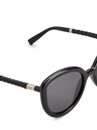 logo-engraved sunglasses Highlights - Black - Braid detailing - Butterfly frame - Curved tips - These glasses come with a protective case. Made in Italy Composition Acetate 100%, Leather 100%, Metal 100% SIZE & FIT Measurement Arm Length 5.51 in(14 cm) Bridge Width 0.78 in(2 cm) Lens Diameter 2.16 in(5.5 cm)