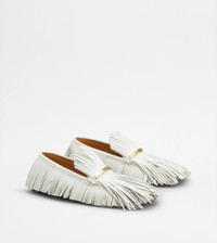 Result of careful craftsmanship, the iconic Gommino driving shoes come here in a sophisticated version with flowing fringes. Crafted in ovine and calfskin leather, with a branded metal front bar, this Tod's Yorky version comes with the signature handmade stitching and the iconic rubber pebble outsole. - Made in Italy - Women's Tod's Gommino - Ovine leather upper - Calfskin leather inserts - Branded metal bar - Exposed handmade stitching - Leather insole - Iconic rubber pebble outsole - Maintenance and care cards included - Branded dustbag