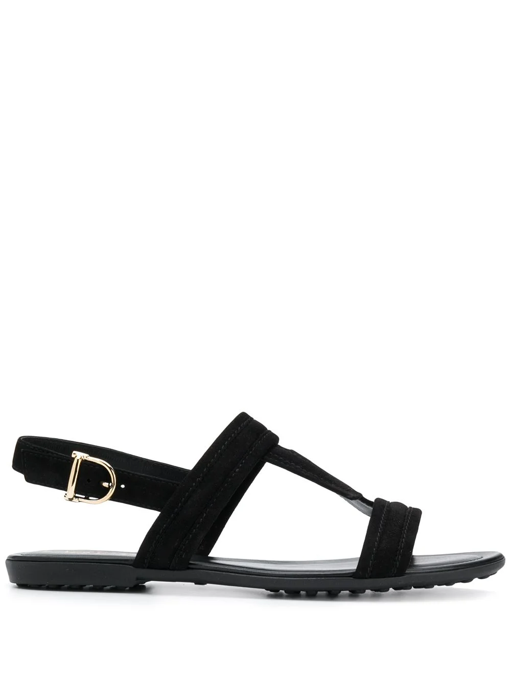 low heel slingback sandals Black calf suede and leather slingback sandals from Tod's featuring an open toe, a side buckle fastening, a branded insole, a ridged rubber sole and a low heel. Made in Italy Composition Lining: Leather 100% Outer: Calf Suede 100% Sole: Rubber 100%