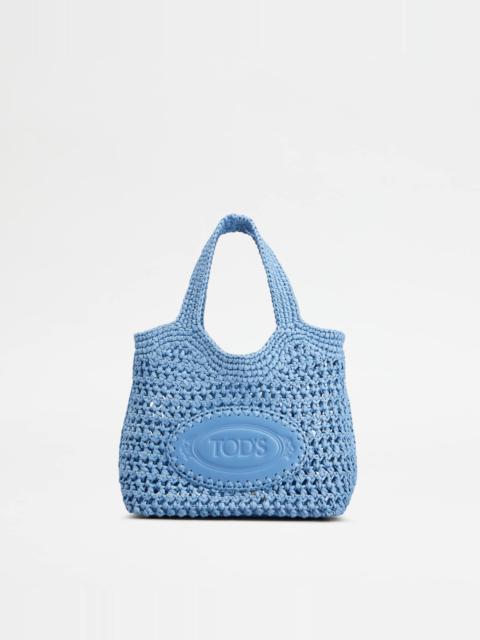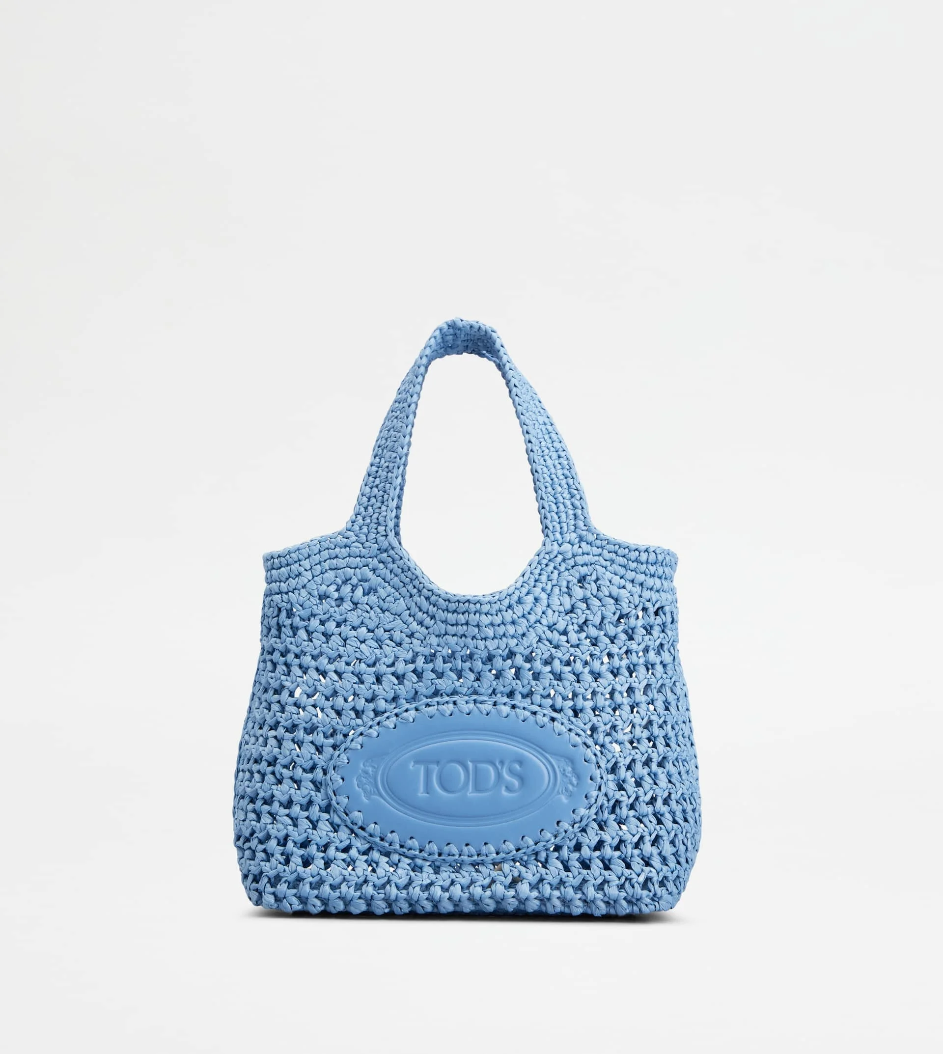 Shopping bag in raffia with handmade crochet knitting. Featuring the distinctive oval in leather with stamped Tod's logo, this creation with a summer mood comes with two fixed handles and a removable shoulder strap in leather. - Dimensions: L 9.8 ins x H 8.3 ins x D 4.7 ins - Handles: height (drop) 5.5 ins - Adjustable and removable shoulder strap: height (drop from the central hole) 20.5 ins, length max 45.3 ins - Made in Italy - Summer shopping bag - Item crafted in raffia (viscose) - Calfskin leather inserts - Tod's logo stamped on the front - Maintenance and care cards included - Branded dustbag