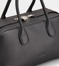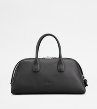 Characterized by maxi zip pulls, straps that elegantly cover the zip when closed, Tod's Darsena is defined by essential and feminine lines. Featuring characteristic tubular handles, it comes with the Tod's logo stamped on the front and a wrapped side padlock, a sophisticated distinctive trait. Here in fine natural-grained calfskin leather, this is a model with a distinctly urban nature, named after the city of Milan. - Dimensions: L 14.6 ins x H 7.1 ins x D 8.3 ins - Handles: height (drop) 5.5 ins - Made in Italy - Bauletto in leather - Item crafted in calfskin leather - Tod's logo stamped on the front - Padlock fit on the side - Double-slider zip closure - T-stitching detailing - Linen blend lining - Internal zipped pocket - Branded metal feet - Maintenance and care cards included - Branded dustbag