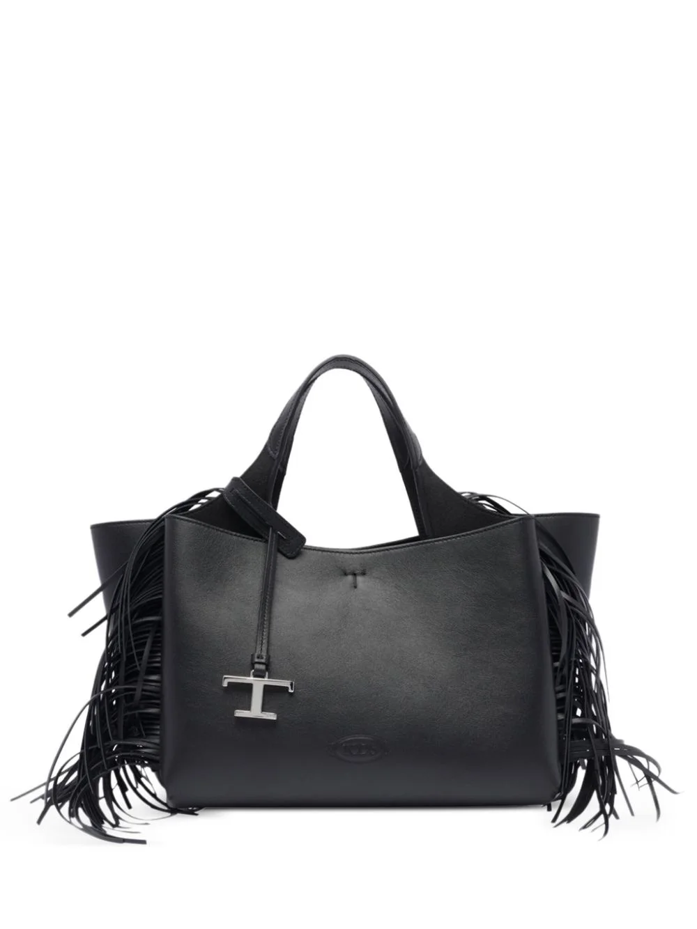 fringed tote bag Highlights - Black - Carabiner fastening - Two top handles - Adjustable detachable shoulder strap - Logo pendant Made in Italy Composition Leather 100% SIZE & FIT Measurement DEPTH 7.08 in(18 cm) HEIGHT 8.26 in(21 cm) WIDTH 10.23 in(26 cm)