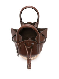 mini straw leather bucket bag Highlights - Chocolate brown - Top drawstring fastening - Two rolled top handles - Adjustable detachable shoulder strap - This piece comes complete with a protective dust bag. Made in Italy Composition Outer: Calf Leather 100%, Straw 100% SIZE & FIT Model measurements Height 5 ft 11 in(1.8 m) Bust/Chest 31.49 in(80 cm) Hips 36.61 in(93 cm) Waist 24.4 in(62 cm) Measurement DEPTH 5.9 in(15 cm) HANDLE 4.72 in(12 cm) HEIGHT 9.44 in(24 cm) WIDTH 10.23 in(26 cm)