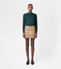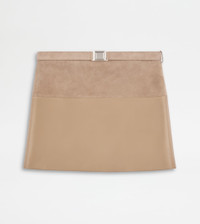 Miniskirt in soft suede and smooth leather, featuring a waist belt with metal interlocking buckle. Versatile and feminine, with an essential and timeless line. - Made in Italy - Miniskirt in leather - Item composition: 100% ovine leather, lining 100% viscose - Maintenance and care cards included
