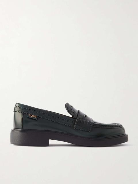EDITORS'NOTES Masters of refined elegance, Tod's has been honing its artisanal craft for over a century. These 'Mocassino' loafers have been made in Italy from patent-leather with penny straps and perforated details inspired by traditional brogues. Wear yours with skirts or tailored pants. SIZE & FIT - Fits true to size, take your normal size - Italian sizing DETAILS & CARE - Slight heel - Brown patent-leather - Slip on
