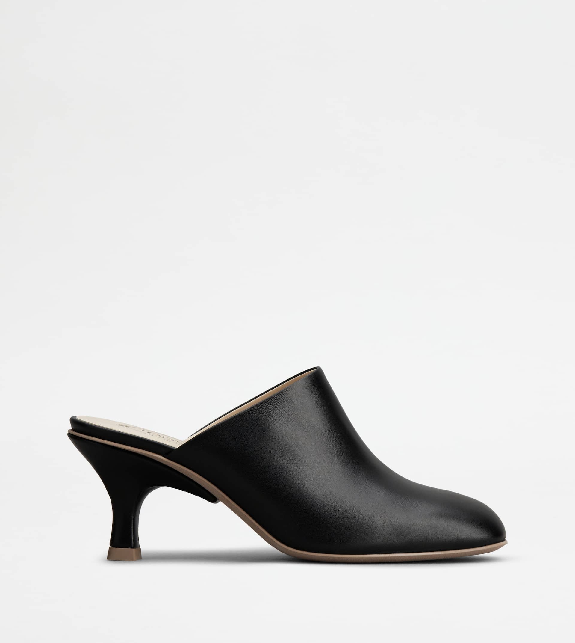 Characterized by a covered spool heel, these mules with essential line are crafted in refined calfskin leather. Featuring a leather outsole, they come with a feminine and elegant allure. - Made in Italy - Women's mules - Calfskin leather upper - Leather insole - Covered heel 2.6 ins - Leather outsole - Maintenance and care cards included - Branded dustbag