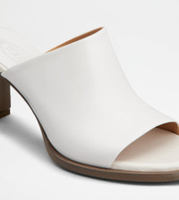 Open toe mules in soft calfskin leather, with wraparound heel and leather outsole. A style with a minimal, feminine and versatile taste. - Made in Italy - Mules in leather - Calfskin leather upper - Leather lining and insole - Covered heel 3 ins - Leather outsole - Maintenance and care cards included - Branded dustbag