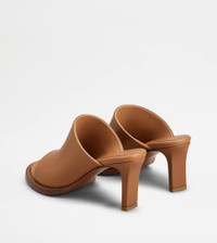 Open toe mules in soft calfskin leather, with wraparound heel and leather outsole. A style with a minimal, feminine and versatile taste. - Made in Italy - Mules in leather - Calfskin leather upper - Leather lining and insole - Covered heel 3 ins - Leather outsole - Maintenance and care cards included - Branded dustbag