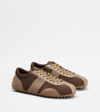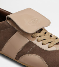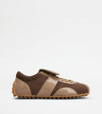 TOD'S T-MARATHON SNEAKERS IN PATENT LEATHER - BROWN, BEIGE