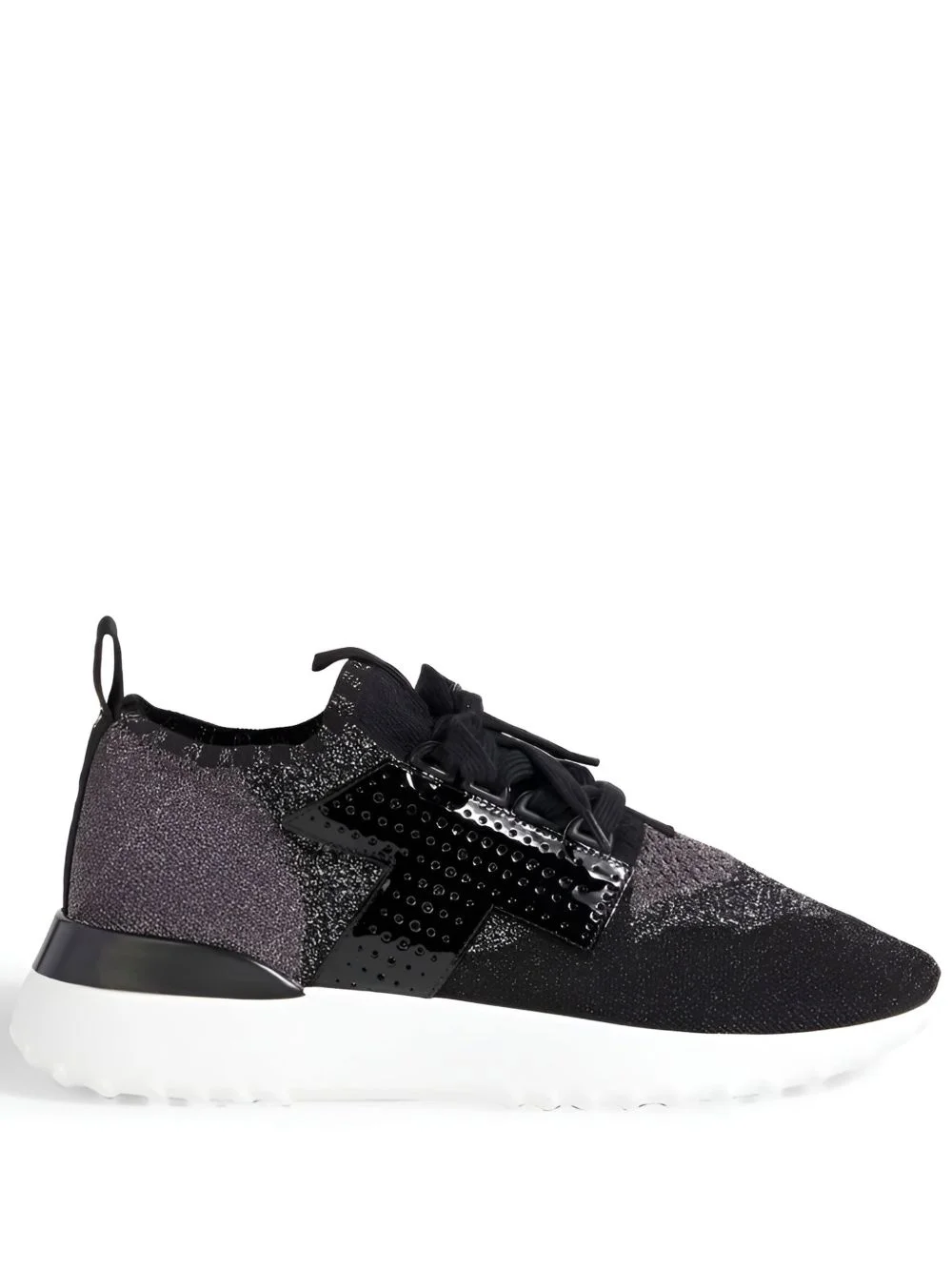 panelled sneakers Highlights - Black - Metallic finish - Knit panels - Lace-up fastening - Pull-tab at the heel - Perforated detail Made in Italy Composition Metallic Fibre 100% Sole: Rubber 100% Lining: Fabric 100% Outer: Polyurethane 100%