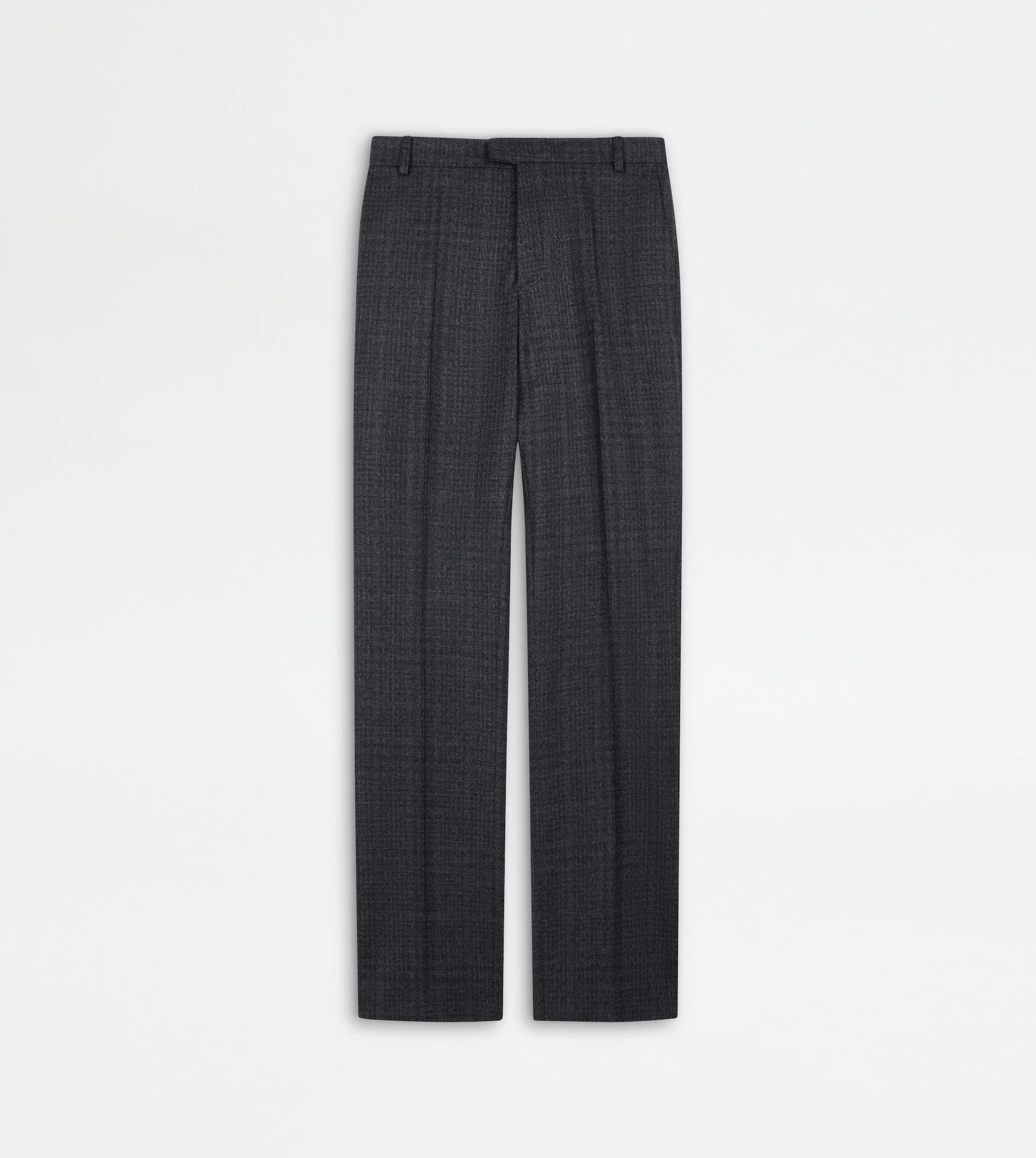 Pants in wool with checks pattern, ironed crease and straight leg. Featuring slanted front pockets, they come with a double welt back pocket with button and a flap pocket with hand-embroidered T-stitching. Fastened with zip, hook and counter-button, they interpret a relaxed elegance. - Made in Italy - Pants with crease - Fitting: regular - The model is 5' 9'' and wears size 38 (IT) - Item composition: 100% virgin wool - Maintenance and care cards included