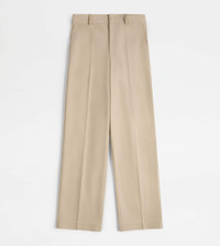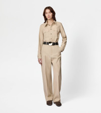 Pants crafted in wool and cotton blend gabardine with ironed crease. Featuring slanted front pockets, they come with the T monogram embroidered on the back pocket flap. - Made in Italy - Women's classic pants - Fitting: regular - Item composition: 62% wool, 38% cotton - Maintenance and care cards included