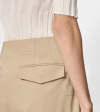Pants with double basque and drawstring waistband, wide leg and maxi pockets. Crafted in cotton poplin with compact hand and slightly wavy look, they are enriched by sophisticated detailing, such as the T-stitching of the button and monogram embroidered on the back pocket flap. An easy chic garment with contemporary mood. - Made in Italy - Pants with drawstring - The model is 5' 9'' and wears size 38 (IT) - Item composition: 100% cotton - Fitting: slightly oversize - Maintenance and care cards included