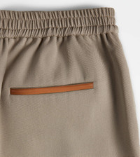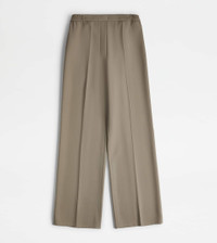 Wide pants in wool with ironed crease. Featuring slanted front pockets and welt back pocket with leather detailing, they are characterized by an elastic waistband. A metropolitan garment with timeless elegance. - Made in Italy - Pants in wool - Item composition: 100% virgin wool, detailing 100% ovine leather - Maintenance and care cards included