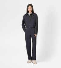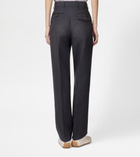 Pants in melange wool gabardine, with ironed crease and straight leg. Featuring slanted front pockets, they come with a double welt back pocket with button and a flap pocket with hand-embroidered T-stitching. Fastened with zip, hook and counter-button, they interpret a relaxed elegance. - Made in Italy - Pants with crease - Fitting: regular - Item composition: 100% virgin wool - Maintenance and care cards included