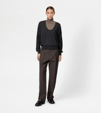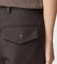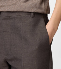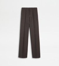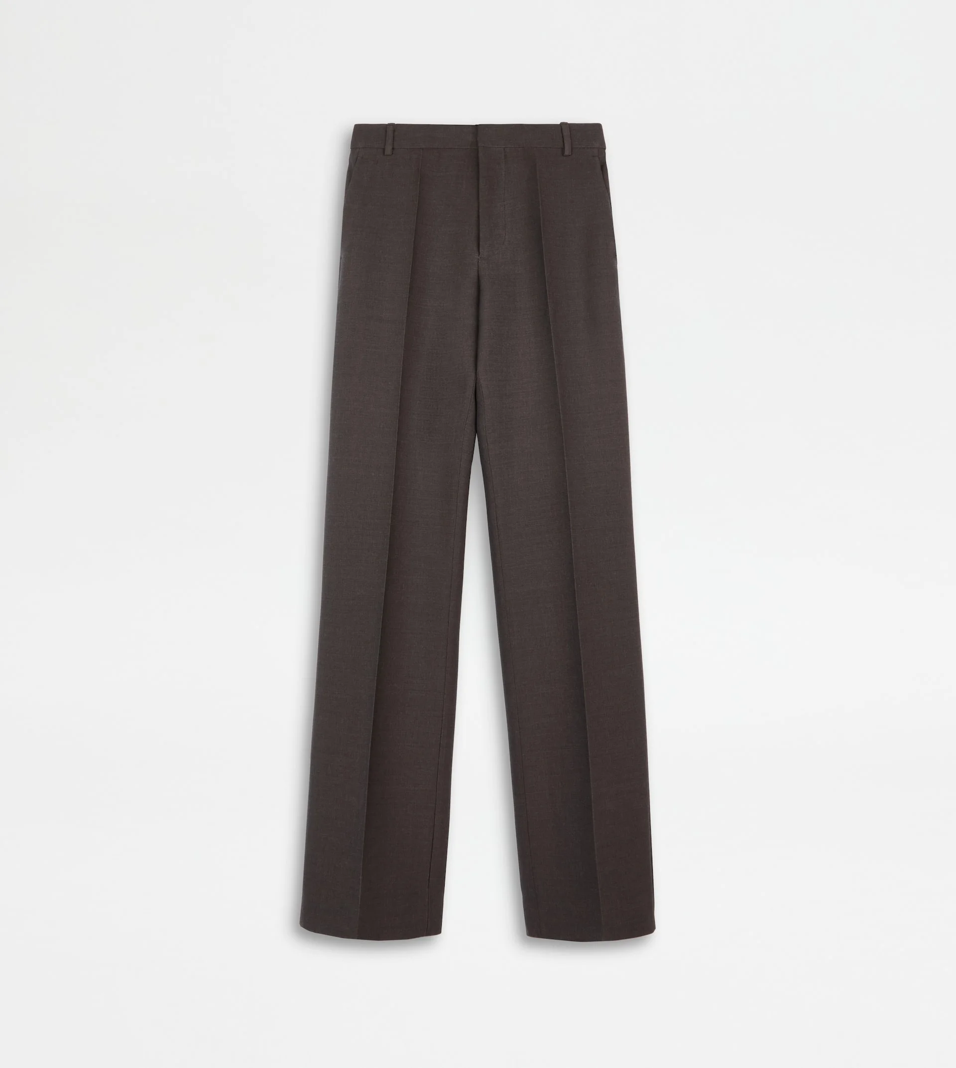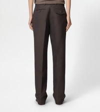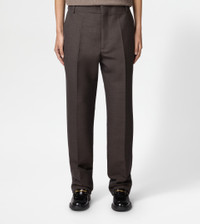 Pants in melange wool gabardine, with ironed crease and straight leg. Featuring slanted front pockets, they come with a double welt back pocket with button and a flap pocket with hand-embroidered T-stitching. Fastened with zip, hook and counter-button, they interpret a relaxed elegance. - Made in Italy - Pants with crease - Fitting: regular - Item composition: 100% virgin wool - Maintenance and care cards included
