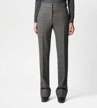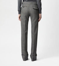 Pants in wool with yarn-dyed checks pattern, ironed crease and wide turn-up at the bottom. Characterized by a straight leg that flares slightly downward, they come with the distinctive T-stitching on the waistband buttons and back pocket flap. Featuring slanted front pockets, they come with a zip fastening inspired by men's pants. - Made in Italy - Women's straight leg pants - The model is 5' 9'' and wears size 40 (IT) - Item composition: 100% virgin wool - Maintenance and care cards included