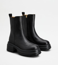 PLATFORM ANKLE BOOTS IN LEATHER - BLACK