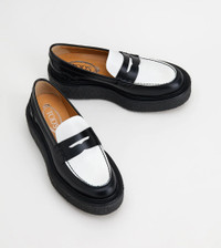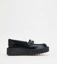 PLATFORM LOAFERS IN LEATHER - BLACK, WHITE
