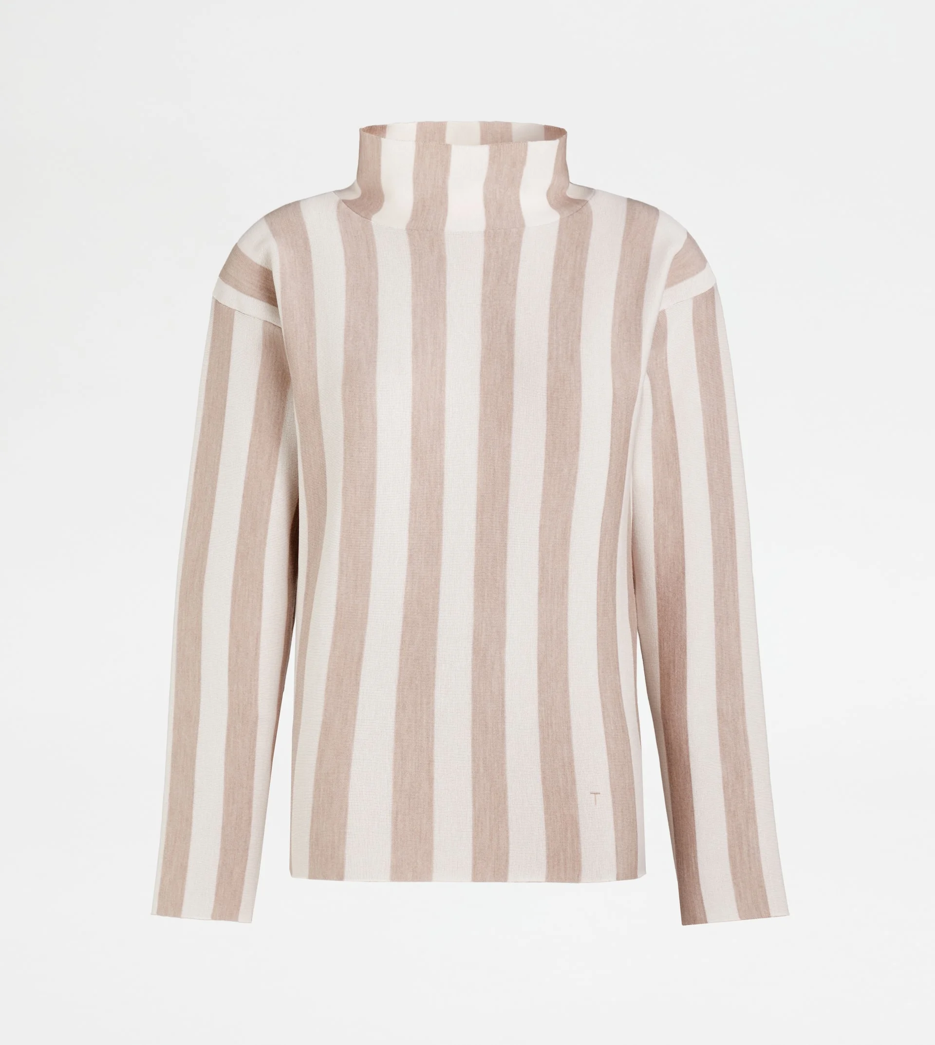 High-neck pullover in wool and viscose jersey, with striped pattern and slightly dropped shoulder. Soft and comfortable, it comes with an essential and refined line that makes it a true passe-partout. - Made in Italy - Fitting: regular - The female model is 5' 9'' and wears size S (IT) - Item composition: 65% wool, 24% viscose, 7% polyamide, 3% silk, 1% elastane - Maintenance and care cards included