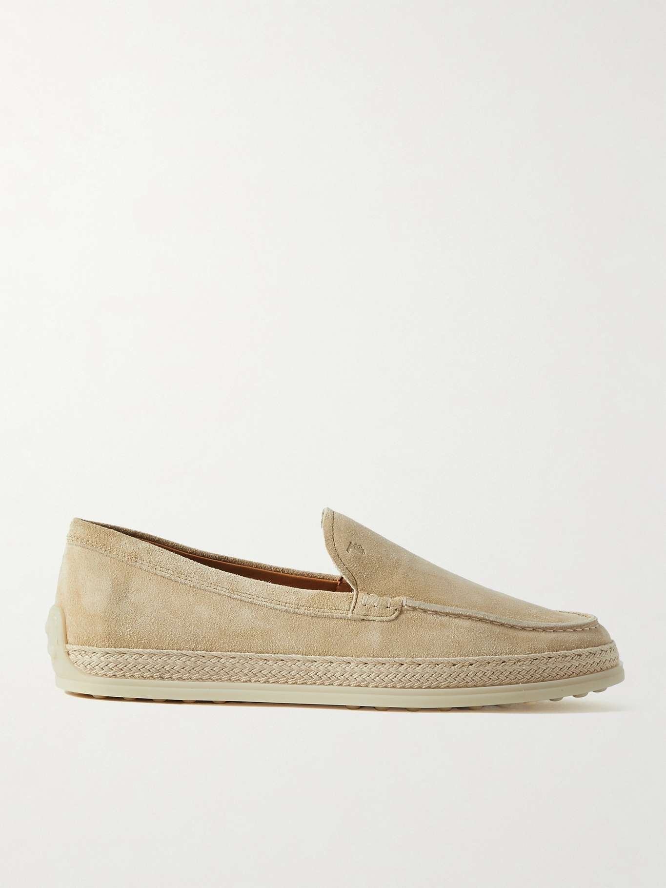 EDITORS'NOTES Loafers are so much of a Tod's signature that even updated pairs like this are totally distinctive. They're crafted from smooth suede with handcrafted raffia trims breaking up the rubber soles. The pebbled detail - another signature - was originally inspired by traditional driving shoes. SIZE & FIT - Fits true to size, take your normal size - Italian sizing DETAILS & CARE - Slight heel - Beige suede (Calf), raffia - Slip on