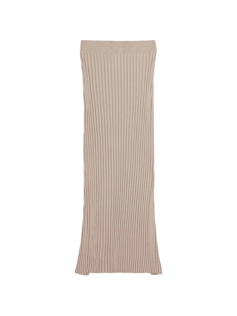 ribbed-knit midi skirt Highlights - Light beige - Ribbed knit - Rear slit - Elasticated waistband Made in Italy Composition Silk 100% Washing instructions Read Manufacturer Guidelines