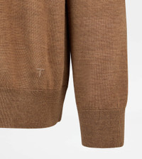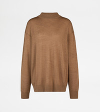ROUND-NECK PULLOVER IN WOOL - BROWN