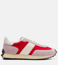 The Runner sneakers by Tod's are crafted from suede and nylon with a classic lace-up closure and a sporty yet sophisticated silhouette. Designed to transcend seasons and trends, this pair is finished with contrasting topstitching details. Product Details - Upper: leather (suede), fabric - Lining: fabric, leather - Sole: leather insole, rubber sole - Color: pink - Toe shape: almond toe - Made in Italy - Includes: dust bag, extra laces, shoe box - Designer color name: Rosa Lotus - Item number: P01141758 Size & Fit - Fits slightly large to size - we recommend trying a half size smaller - European sizes - 2,5cm-1" platform - 3,5cm-1.5" wedge heel