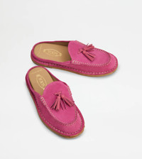 Born from the collaboration with Hender Scheme, these sabots are crafted in velvety suede, with hammered leather tassels and exposed handmade stitching. Featuring a leather outsole with embossed rubber pebbles and a horseshoe-shaped rubber heel, this is a combination of fine design, craftsmanship and a devotion to details. - Made in Italy - Tod's Sabots - Exclusive Collection Hender Scheme - Suede upper - Hammered leather tassels - Exposed handmade stitching - Horseshoe-shaped rubber heel - Leather outsole with embossed rubber pebbles - Maintenance and care cards included - Branded dustbag