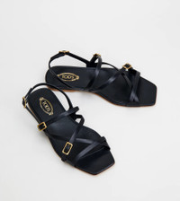 Sandals in elegant leather with a squared toe, crossed straps, metal branded buckle, leather outsole. - Made in Italy - Women's Tod's Sandals - Leather upper - Metal branded buckles - Leather insole - Leather heel with rubber insert - Leather outsole - Maintenance and care cards included - Branded dustbag