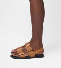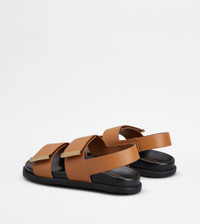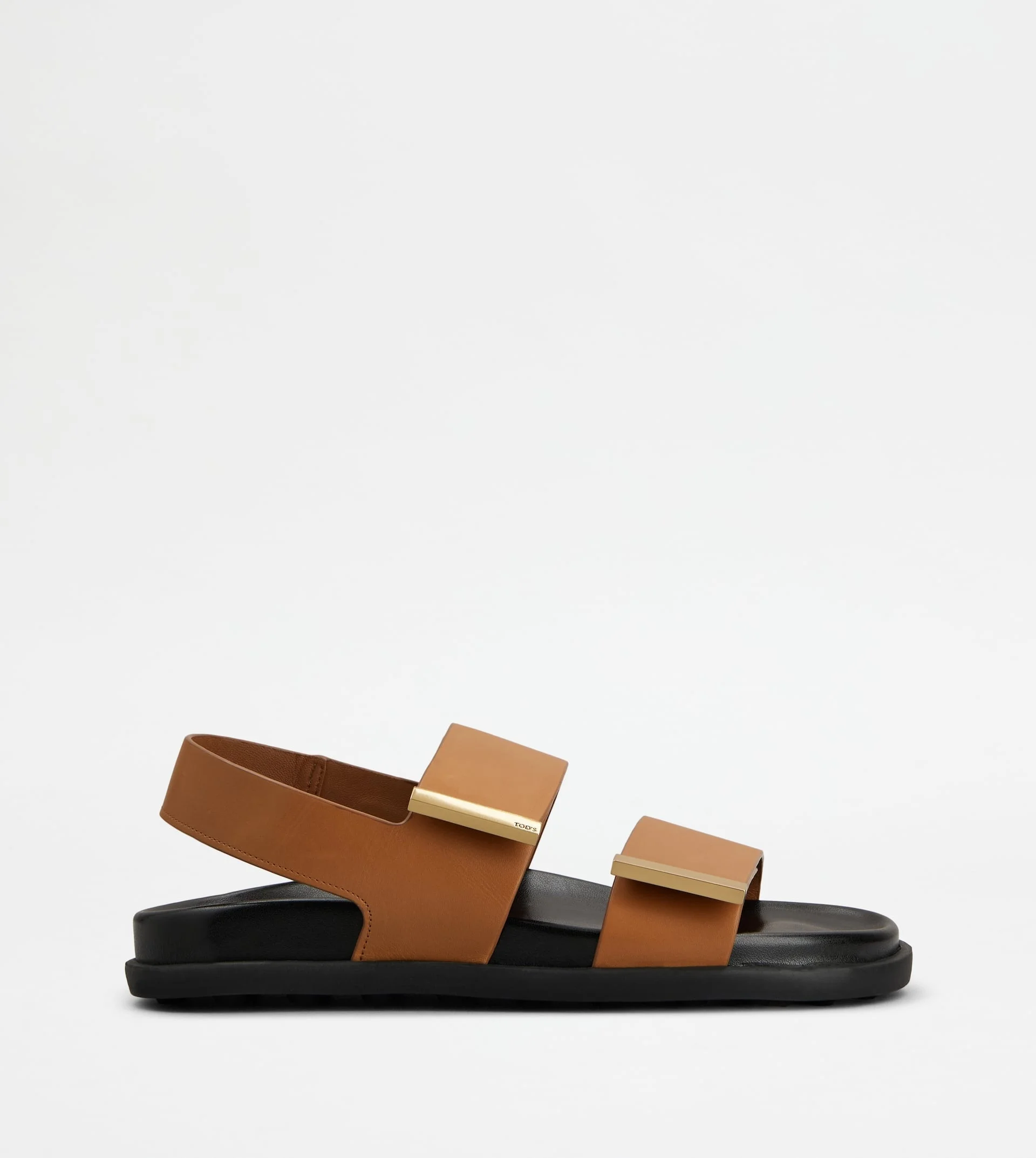 Sandals in calfskin leather, characterized by two bands enriched by branded metal ends. Featuring a light rubber outsole with rubber pebbles, they are an easy chic style, practical and versatile. - Made in Italy - Women's strappy sandals - Calfskin leather upper - Velcro closure - Branded metal detailing - Anatomic insole - EVA rubber outsole with rubber pebbles - Maintenance and care cards included - Branded dustbag