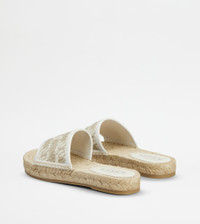 SANDALS IN LEATHER AND FABRIC - OFF WHITE, BEIGE