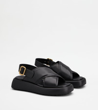 Sandals in soft calfskin leather, with crossed bands. Featuring a heel strap with branded metal buckle, this easy chic style comes with a slightly padded insole and rubber outsole with iconic embossed detailing. - Made in Italy - Women's strappy sandals - Calfskin leather upper - Heel strap with branded metal buckle - Leather insole - Rubber outsole with embossed detailing - Maintenance and care cards included - Branded dustbag