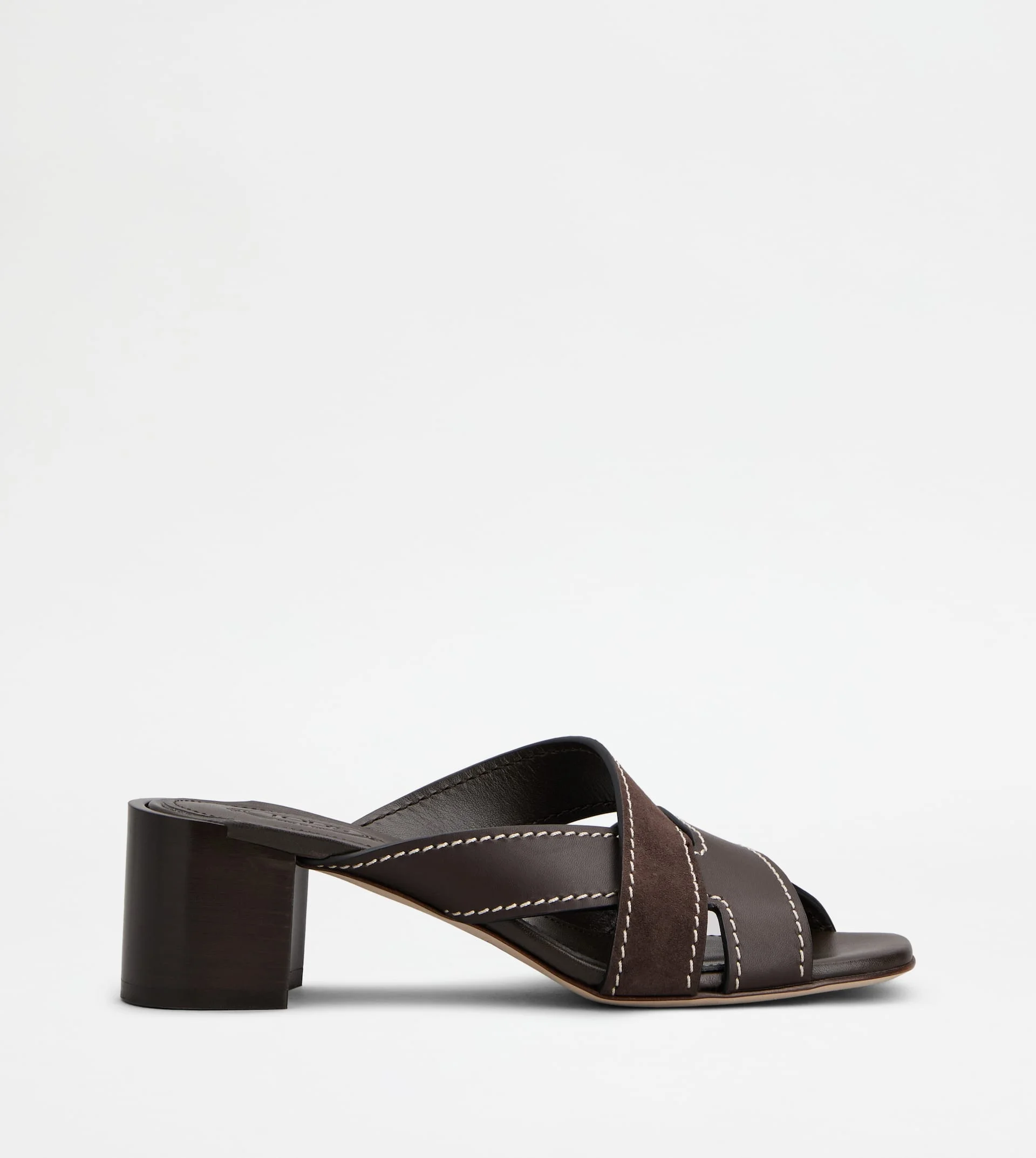 Sandals in smooth leather and suede, characterized by a T-shaped band crossing. Featuring a medium leather heel, they are a versatile style, with timeless elegance. - Made in Italy - Women's sandals - Calfskin leather upper - Goatskin suede inserts - Leather lining and insole - Leather heel 2.2 ins - Leather outsole - Maintenance and care cards included - Branded dustbag
