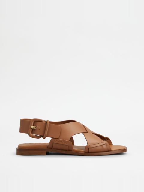 SANDALS IN LEATHER - BROWN