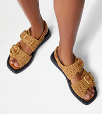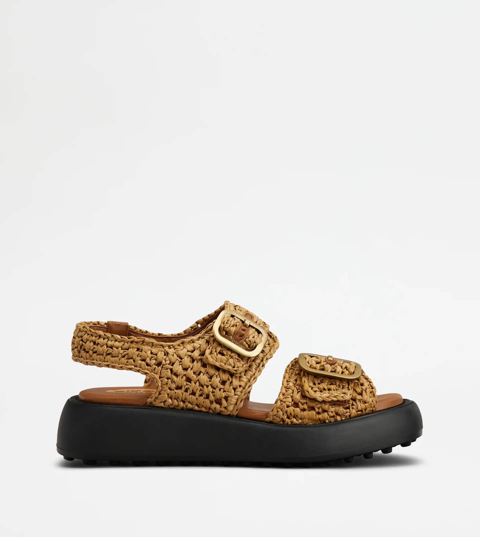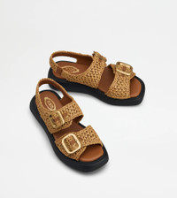Sandals with raffia bands, leather detailing and branded metal buckles. Cushioned insole and rubber outsole with rubber pebbles. - Made in Italy - Women's Tod's sandals - Raffia upper - Straps with branded metal buckles - Leather detailing - Cushioned insole - Rubber outsole with embossed rubber pebbles - Maintenance and care cards included - Branded dustbag
