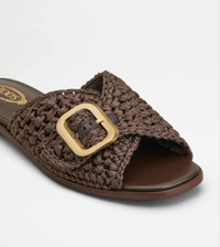 Sandals in woven raffia with branded metal buckle, leather detailing and insole, leather outsole. - Made in Italy - Women's Tod's Sandals - Raffia upper - Leather detailing - Branded metal buckle - Leather insole - Leather outsole - Maintenance and care cards included - Branded dustbag