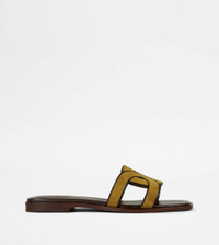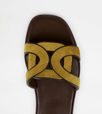 Sandals in soft suede with a contoured strap, reminiscent of the iconic chain accessory. Featuring a leather outsole, this is a passe-partout in your summer look. - Made in Italy - Women's Flat Sandals - Suede upper - Leather insole - Heel in rubber and leather - Leather outsole - Maintenance and care cards included - Branded dustbag