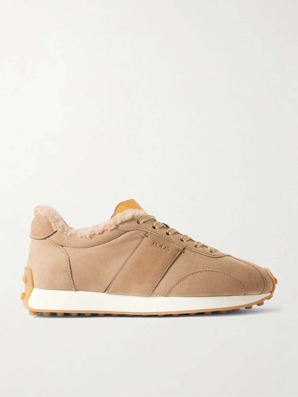 Sportivo Active Embroidered Shearling-trimmed Suede Sneakers