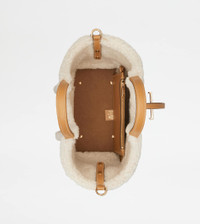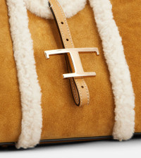 Mini shopping bag with flowing lines in suede, with soft shearling piping and lining. Featuring two practical handles and a removable shoulder strap, it comes with the branded metal T Timeless pendant and an internal removable pouch. - Dimensions: L 11.8 ins (extended compartment) x H 7.7 ins x D 4.7 ins - Handles: height (drop) 5.9 ins - Adjustable and removable shoulder strap: height (drop) 20.5 ins - Made in Italy - Mini shopping bag - Item crafted in calfskin suede - Merinos lambskin fur inserts and lining - Branded metal T Timeless pendant - Strap and snap button closure - Removable internal pouch in smooth leather - Branded metal feet - Maintenance and care cards included - Branded dustbag