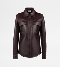 Shirt in leather with contrasting stitching. Featuring two flap pockets, it comes with buttons secured by the distinctive T-stitching. The Tod's monogram hand-embroidered on the shoulders adds a refined distinctive note. - Made in Italy - Shirt in leather - Fitting: regular - The model is 5' 9'' and wears size 38 (IT) - Item composition: 100% ovine leather - Maintenance and care cards included