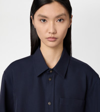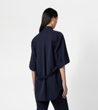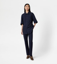 Characterized by a sleeve with a turn-up hem and breast pocket, this shirt in crafted in wool and cotton. Featuring a rounded bottom and a belt that adjusts the waist, it comes with a button fastening and the distinctive T-stitching on the bottom. - Made in Italy - Women's shirt in wool and cotton - Fitting: regular - Item composition: 62% virgin wool, 38% cotton - Maintenance and care cards included