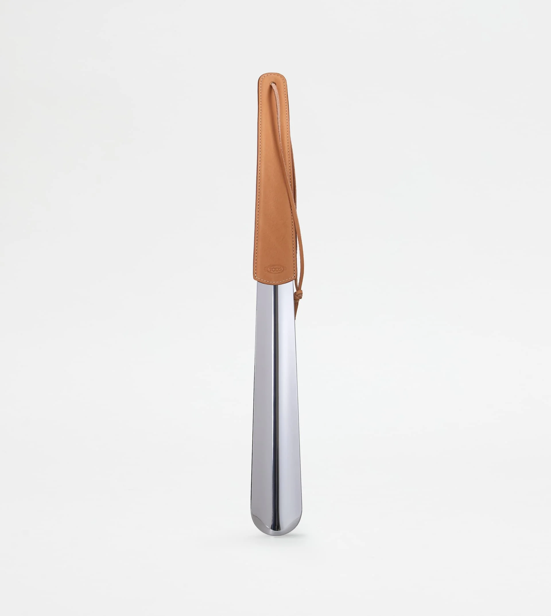 Shoehorn in metal with leather handle and stamped Tod's logo. - Made in Italy - Men's Tod's Shoe horn - Metal shoe horn - Leather handle - Stamped Tod's logo - Maintenance and care cards included - Branded dustbag