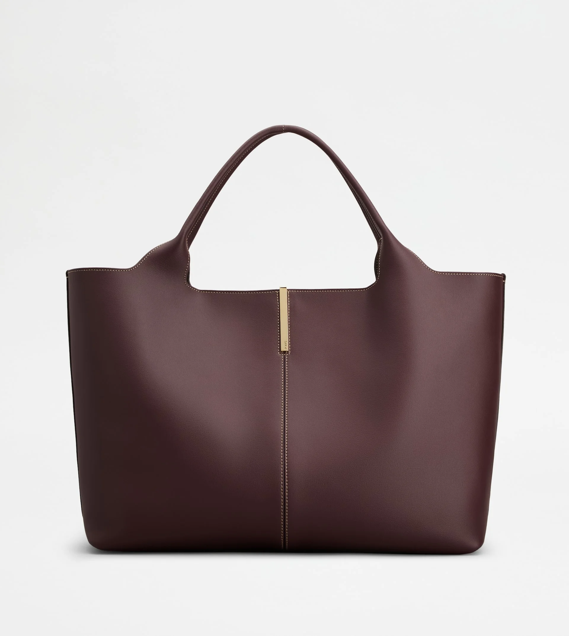 Essential design, lightness and practicality are combined in this shopping bag with a contemporary mood. Crafted in calfskin leather, it features a central stitching emphasized by the branded metal bar accessory. Closed with a magnet, it is perfect for the everyday urban look. - Dimensions: L 18.9 ins x H 11.4 ins x D 5.9 ins - Handles: height (drop) 6.7 ins - Made in Italy - Tod's shopping bag - Item crafted in calfskin leather - Branded metal bar accessory on the front - Magnet closure - Branded metal feet - Maintenance and care cards included - Branded dustbag